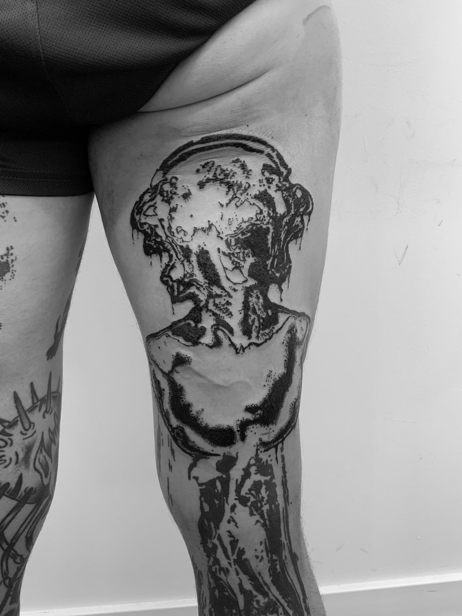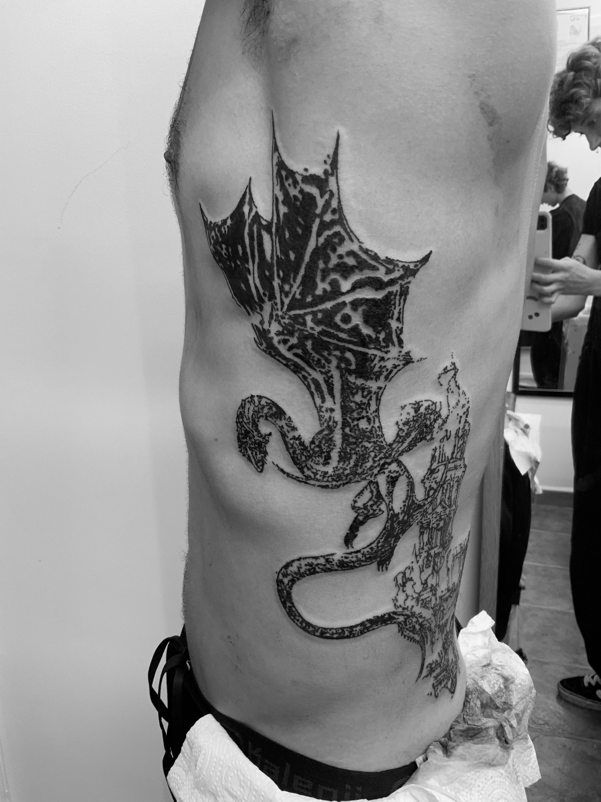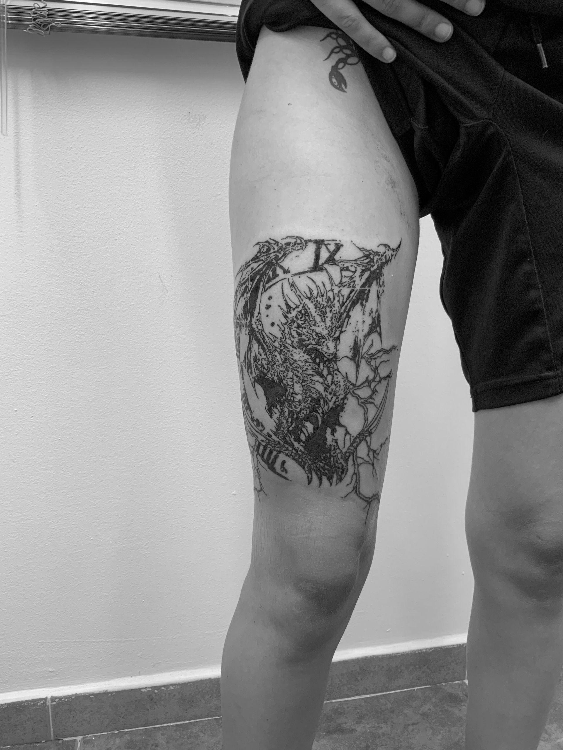 Free hand Implica que lx tatuadorx dibuja sobre la piel a mano alzada, sin utilizar una plantilla o calco. Este proceso permite mucha libertad creativa i adapta mejor las formas naturales del cuerpo. El diseño puede ir evolucionando según la zona y el estado de lx clientx.